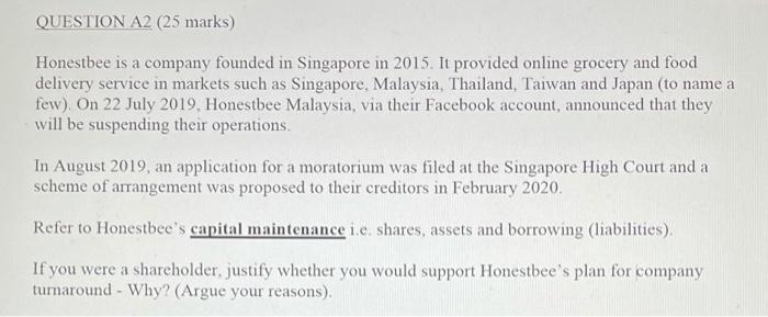 Question A2 25 Marks Honestbee Is A Company Founded Chegg Com