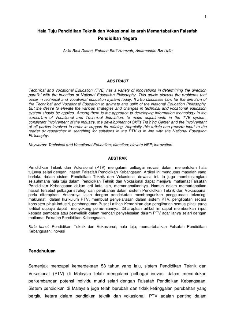 Pdf Cabaran Dan Strategi Pendidikan Teknik Dan Vokasional Ke Arah Mencapai Wawasan 2020 Pdf Dr Ishak Johari Ph D Academia Edu